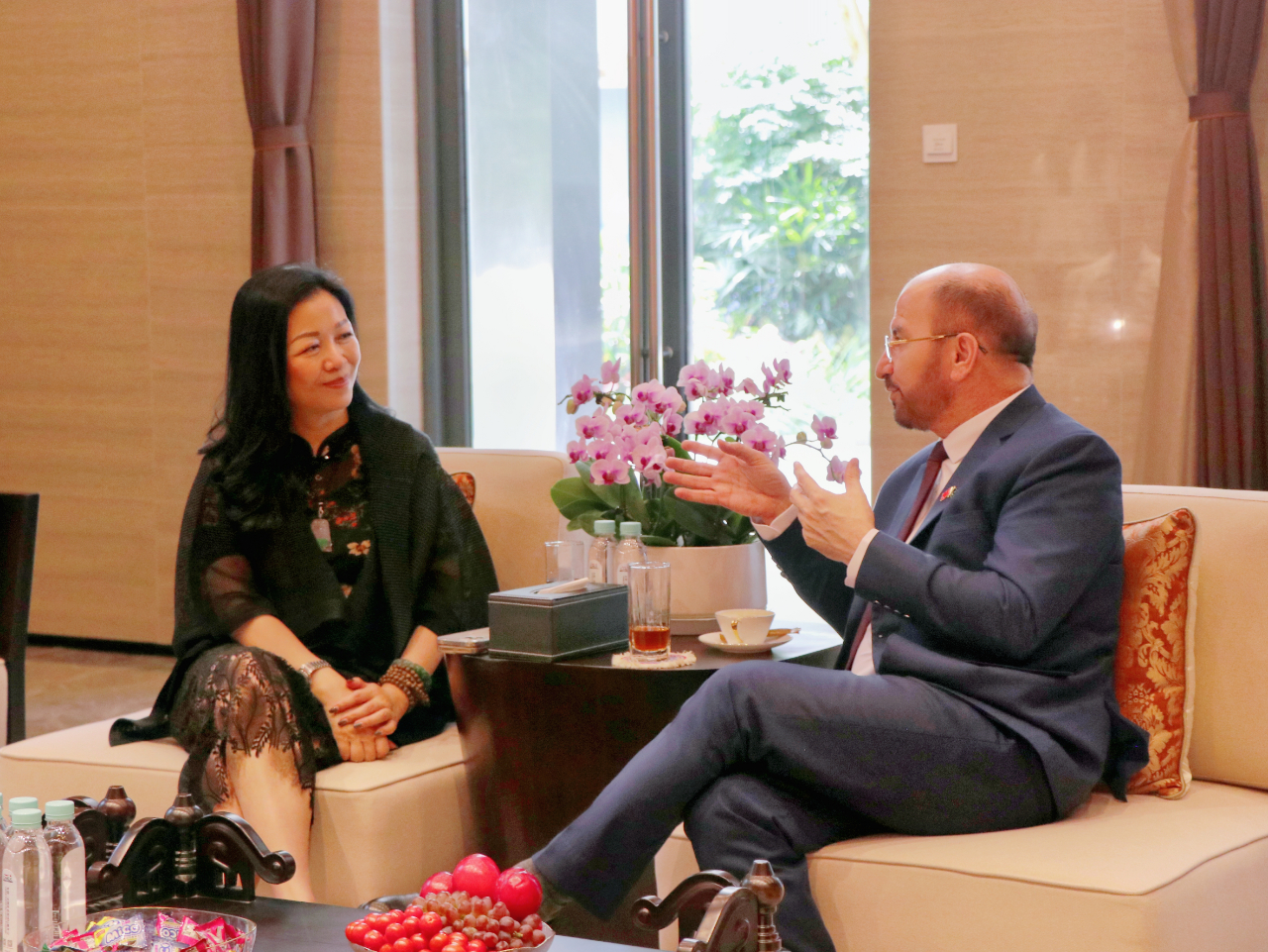 趙海燕董事長(cháng)與薩達爾· 穆罕默德代理總領(lǐng)事在匯聚中心合影