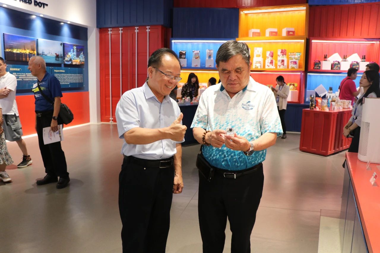 參訪(fǎng)團一行在參觀(guān)匯聚中心線(xiàn)下主題展館過(guò)程中,對館內琳瑯滿(mǎn)目的特色商品表現出濃厚的興趣,認為匯聚中心創(chuàng )新理念非常出色,能夠通過(guò)線(xiàn)上下單快速配送一站式購買(mǎi)各式東盟、RCEP其他區域國家乃至“一帶一路”沿線(xiàn)重要國家的特色商品,比如新加坡的肉骨茶、印尼的咖啡、日本的清酒、澳大利亞的紅酒等,對商家及消費者來(lái)說(shuō)將是一種全新的沉浸式商貿體驗。