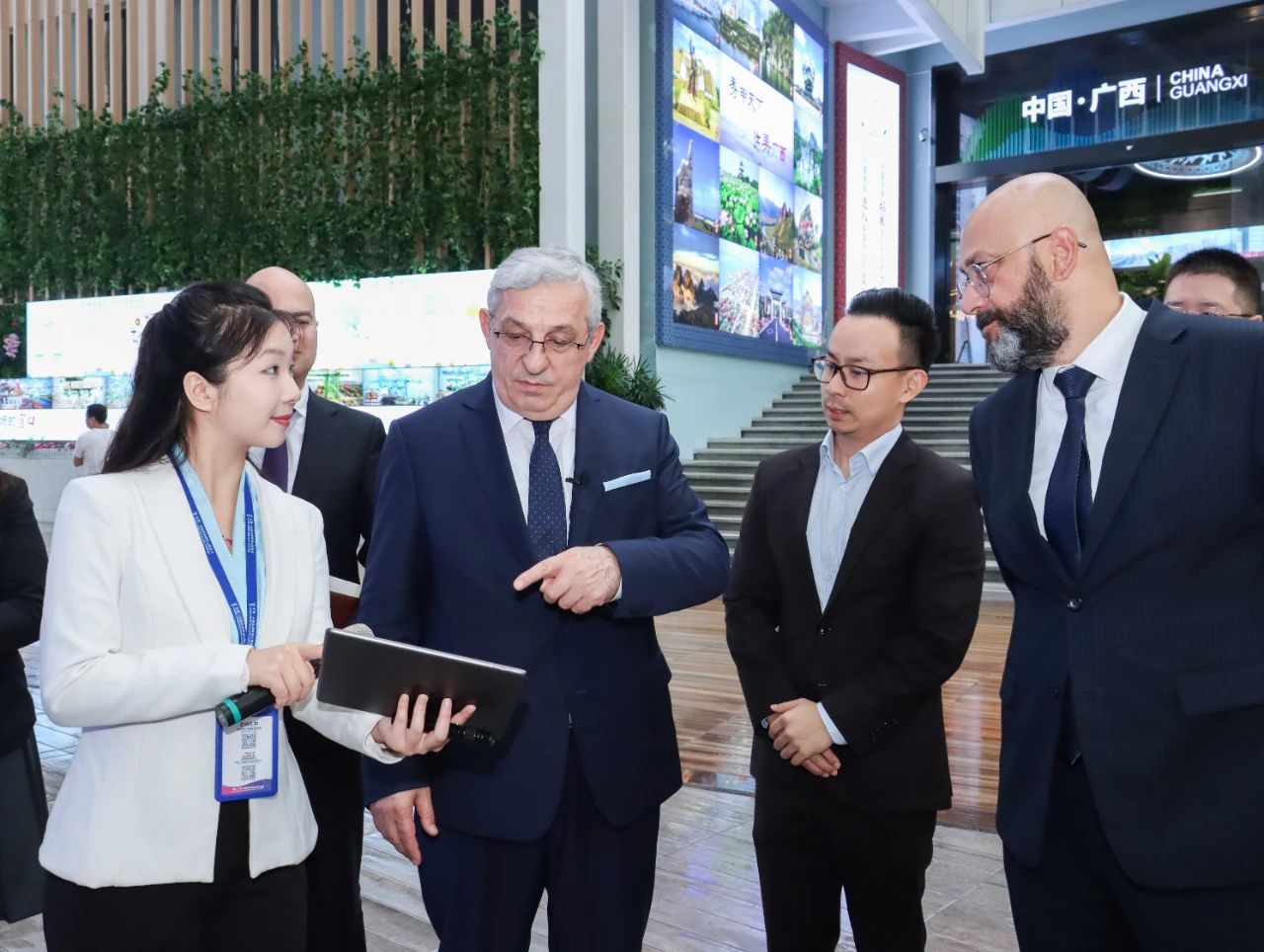 為進(jìn)一步拓展土耳其與廣西在經(jīng)貿領(lǐng)域的交流與合作,受廣西貿促會(huì )會(huì )長(cháng)楊雁雁邀請,土耳其駐華大使伊斯梅爾·哈克·穆薩一行到廣西參與“桂通五洲(亞歐站)”中國(廣西)—土耳其經(jīng)貿合作推介會(huì )。期間,穆薩大使一行于2024年5月8日專(zhuān)程到中國—東盟特色商品匯聚中心(簡(jiǎn)稱(chēng)“匯聚中心”)參觀(guān)考察并探討未來(lái)可合作意向。