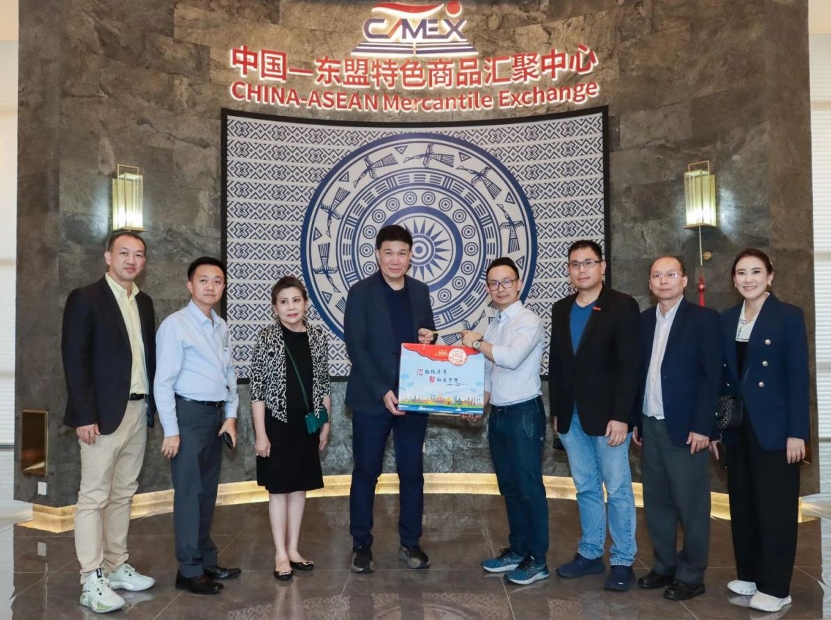 2024年6月6日,泰國工業(yè)聯(lián)合會(huì )副主席維迪·左瓦塔那率由泰國地方政府部門(mén)、商協(xié)會(huì )及企業(yè)家組成的考察團到中國—東盟特色商品匯聚中心(簡(jiǎn)稱(chēng)“匯聚中心”)參觀(guān)交流。中國—東盟特色商品匯聚中心總經(jīng)理林哲宇熱情接待了考察團一行。