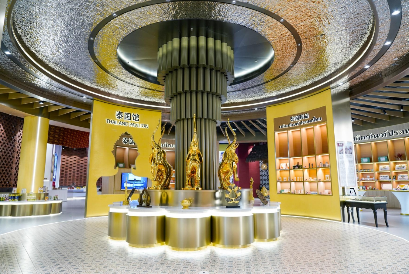 泰國素有“千佛之國”“白象王國”等美稱(chēng),匯聚中心泰國館的設計就巧妙融入了經(jīng)典的蓮花、佛像、大象等元素。