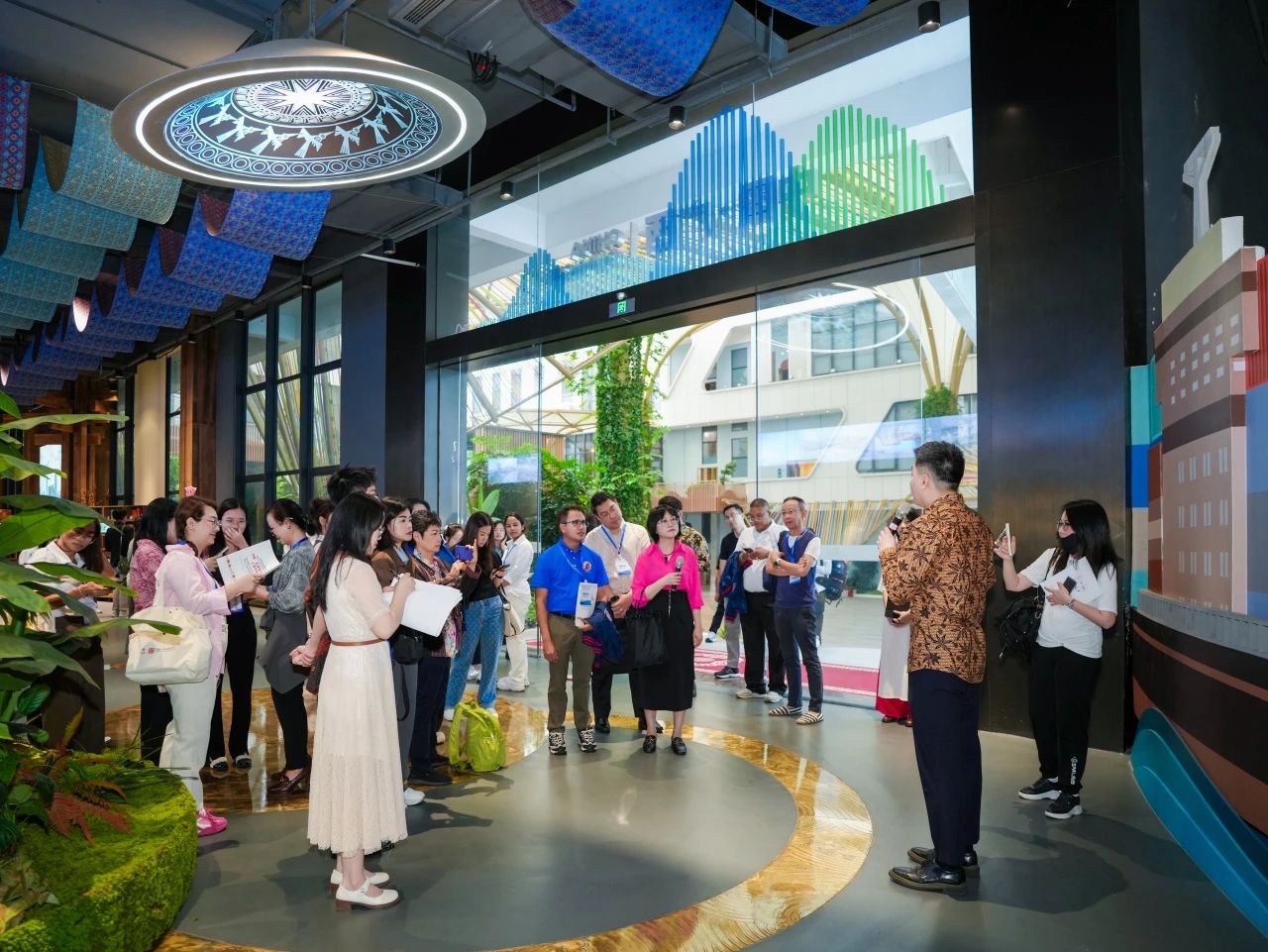 2025年5月5日—9日,由中國商務(wù)部主辦、中國外文局教育培訓中心承辦的“泰國新聞官員與記者培訓班”一行到廣西參訪(fǎng),5月6日,泰國媒體代表團在中國外文局教育培訓中心副主任李恒田的陪同下到中國—東盟特色商品匯聚中心(簡(jiǎn)稱(chēng)“匯聚中心”)參觀(guān)考察,實(shí)地探訪(fǎng)了多個(gè)主題展館,深入了解這一中國與東盟經(jīng)貿合作平臺的創(chuàng )新模式與發(fā)展成果,感受“永不落幕的中國—東盟博覽會(huì )”。中國—東盟特色商品匯聚中心副總經(jīng)理李丹熱情接待了代表團。