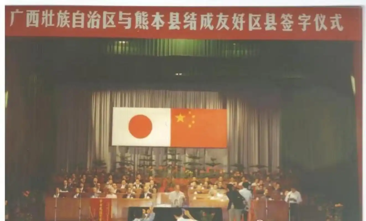 廣西與熊本縣有著(zhù)深厚的友好關(guān)系。早在1979年,桂林市就與熊本市締結為友好城市關(guān)系,是廣西第一對國際友好城市;在1982年,廣西與熊本縣正式建立友好區縣關(guān)系,熊本縣也成為廣西第一對自治區級國際友城。自首屆中國—東盟博覽會(huì )起,熊本縣幾乎每年都來(lái)南寧參展。近年來(lái),熊本縣更是與廣西交流合作緊密,成果豐碩。