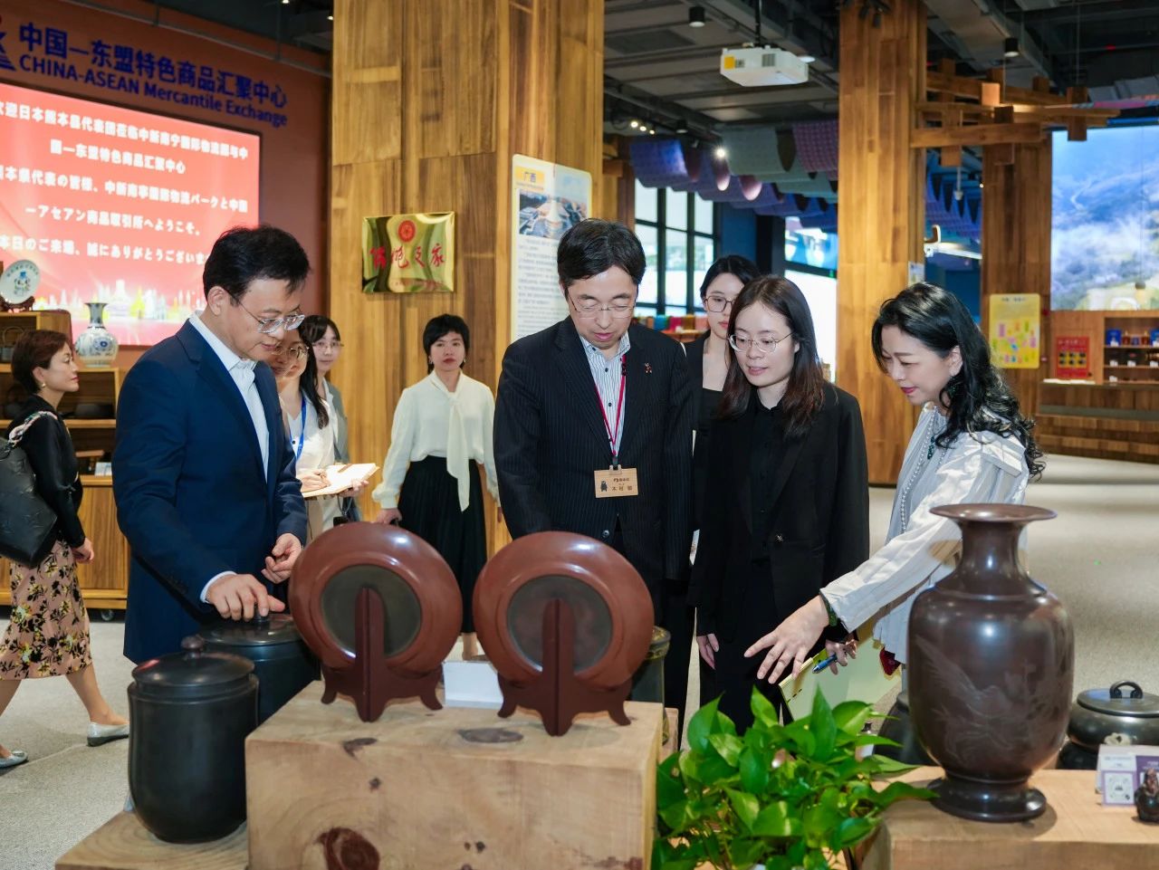 在匯聚中心,代表團通過(guò)沉浸式參觀(guān)、聽(tīng)取講解和互動(dòng)交流,詳細了解了項目的運營(yíng)模式和功能定位,對其融合了異國風(fēng)情的展館設計,以及館內琳瑯滿(mǎn)目的商品表現出濃厚興致。代表團成員表示,匯聚中心作為中國與東盟、RCEP其他區域國家乃至“一帶一路”沿線(xiàn)重要國家經(jīng)貿往來(lái)線(xiàn)上線(xiàn)下一站式首選平臺,各展館特色商品之豐富,文化元素之博大,異域風(fēng)情之獨特,令人嘆為觀(guān)止。
