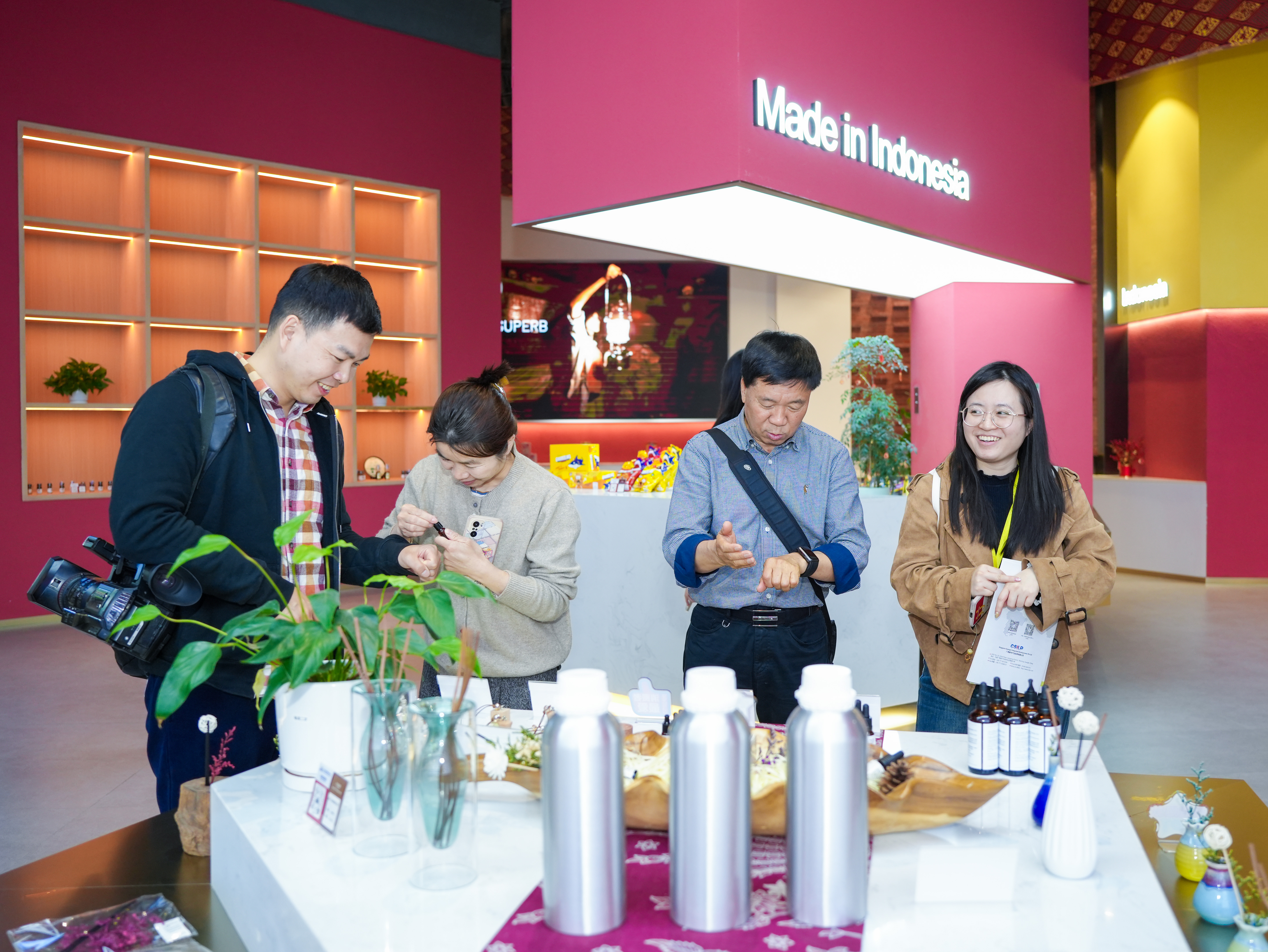 漫步匯聚中心,濃郁的東盟風(fēng)情迎面而來(lái)。印度尼西亞館的“巴厘島”風(fēng)情、新加坡館的“花園城市”設計......精心打造的17個(gè)主題展館,其匠心獨運的文化元素和特色商品讓采訪(fǎng)團眼前一亮。記者們或駐足欣賞,或交流討論,或舉起相機記錄精彩瞬間,沉浸式感受著(zhù)東盟各國的獨特魅力。