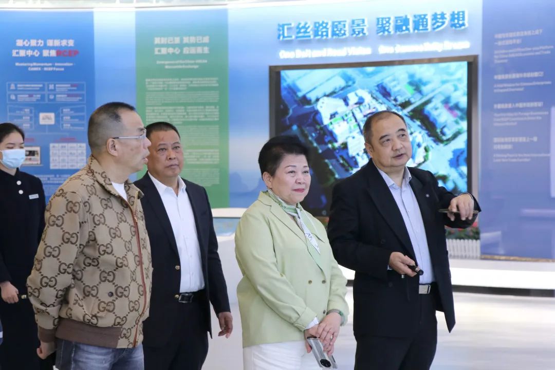 凝聚僑力 互促發(fā)展丨廣西僑商會(huì )會(huì )長(cháng)王琳達一行到中新物流園和匯聚中心考察